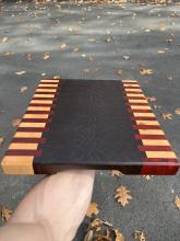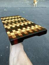 All of our handmade cutting boards are end grain. End grain cutting boards are longer lasting, more durable, and will keep your knives sharper than side grain cutting boards! All cutting boards are finished with 3 coats of food safe cutting boards oil and finished with a coat of cutting board wax for long lasting protection!