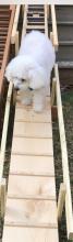 Ruff Ramp allows dog owners to create a ramp for aging or infirmed dog to easily traverse staircases. Its modular design allows them to gently and safely walk up and down staircase regardless of the number of stairs with an easy 15 degree slope. Ruff Ramp ends the need to carry, guide, or assist your dog up and down the staircase every time they go outside.
