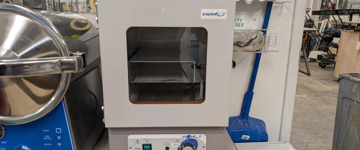 To use this tool, set the oven to the desired setting (you can put a thermometer inside to accurately monitor the temperature), close the top left valve and open the top right valve, and activate the vacuum pump to pull a vacuum. Turn the pump off when finished, and open the left valve to let air back in so that you can open the door.