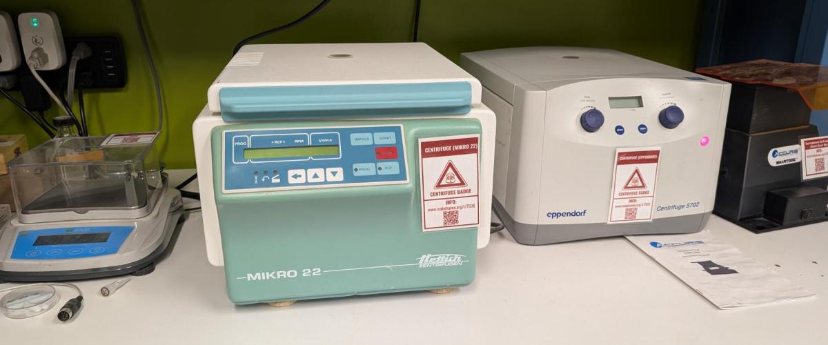 Requirements for Use Required Badge Centrifuge Prerequisite Badge Prerequisite Community Bio Watch Video Pass Quiz In person checkout required Facilitator Checkout No Volunteers Currently Assigned Estimated Minutes for Checkout 15 Minutes