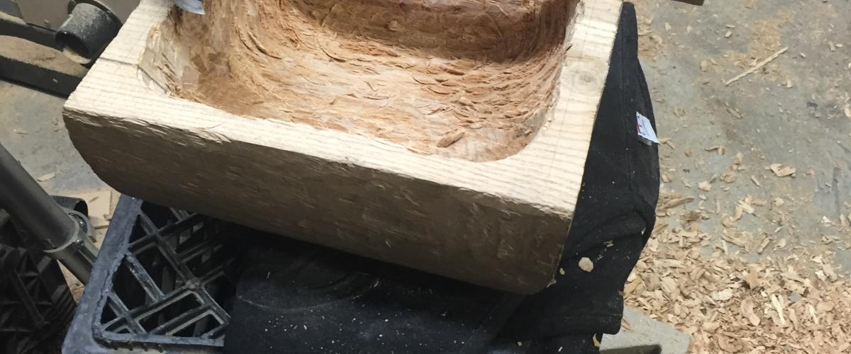 Right now I only have a curved adze. Its hooked inward and elliptical in cross-section and typically it would be used for hollowing out an interior (a hooked adze with a flat crossection seems to be typically use for bowl exteriors but what do I know…I’m a beginner and I only have one tool.) I seem to be spending 1-2 hours to rough out each side and it seems like another hour to smooth.