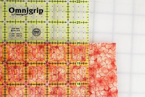 Using a straight edge and rolling knife, cut the first edge. Be sure to use the knife on the waste side of the fabric to avoid cutting into the mat itself.