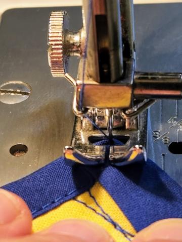Lift the pressure foot to turn the mat. Stitch to the point. End with the needle down.