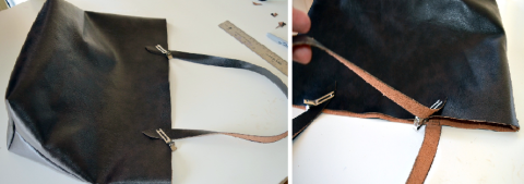Position straps where you like on your tote and secure them with clips. I positioned my straps 4" in from each side.